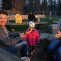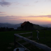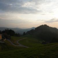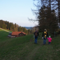 Dann noch bissle in den Schweizer Hügeln gekurvt, den Bodensee von oben angeschaut und ein paar mal die Straße zum Zielort verfehlt da sie nicht im alten Navi war. Hier und da musste Papa deshalb in den engen Straßen und Gassen umdrehen – na ja, ging soweit gut. Sabse hat uns dann super freundlich in ihr Heim aufgenommen und hatte auch ne top Idee für den Abend! Wir machten alles in einem Rutsch, wir fuhren im Jeep (Papa wie der Hund im Laderaum), wir gingen wandern, Feuer machen, Stöcke schnitzen, Würste und Gemüsespieße grillen, Stockbrot backen und die Erwachsenen haben den örtlichen Gerstensaft verkostet. Sabse hatte alles vorbereitet – vielen lieben Dank noch mal dafür! Es war herrlich, mit genialem Ausblick auf den Bodensee wenns auch leider bissle diesig war an dem späten Nachmittag was den Blick auf den Säntis verwehrt hatte.