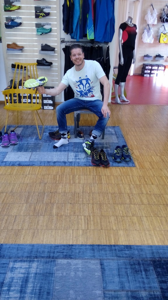 Meine Eltern haben sich vorgenommen während der Reise ein wenig mehr als sonst zu sporteln und deshalb wollen sie sich noch geschwind Laufschuhe kaufen bevor wir uns heute als allerletztes von Oma und Opa verabschieden. Ich glaub Mamas Idee wars im Laufsportladen in Kissleg auf so einem Laufband rumzurennen damit sich der Verkäufer über eine Kamera ankuckt wie Mann oder Frau so läuft. Über die aufgenommenen Videobilder verpasst der einem dann entweder das für dich orthopädisch perfekte Schuhwerk oder eben das Paar an dem er am meisten verdient…
