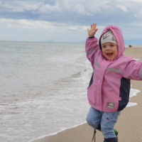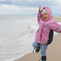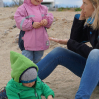 Noch durch ein paar Hügel und wir sahen es – das Meer 🙂 Leider nicht gerade in strahlendem Sonnenschein aber für mich wars so und so ein imposanter Anblick. Echt cool! Mama drehte sich um und zeigte es uns und sie fragte Juna wie sie das denn finde. Meine Schwester sagte nur “Äh, I hon denkt mir fahred in da Urlaub aber jetzt fahred mir ans Meer?”. Meine Schwester babbelt den ganzen Tag und erzählt und erzählt und frägt und frägt und diskutiert und diskutiert usw. usw. Da kannst du dir das Maul fusslig reden beim Antworten und bringst sie nicht gestillt aber ich seh meine Eltern dabei ganz oft herzhaft lachen was echt für das Quasseltalent meiner Schwester spricht. Sie bringt uns ständig zum Lachen das macht uns gute Laune und sie so liebenswert.