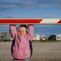 Zum Glück haben wir gestern Abend doch noch unsere ganzen Utensilien in den Kofferaum geräumt denn es hat geregnet heute Nacht, so richtig wie aus Kübeln geschüttet hats. Irgendwie gemütlich wenn man drin im Warmen ist aber auch ein wenig schade da wir heute morgen so weder zum Frühstücken noch zum Spielen raus konnten. Papa haben wir dann rausgeschickt denn irgendjemand musste ja das Stromkabel noch vom Auto trennen und einpacken. Danach durfte meine große Schwester Juna auf Papas Schoß das große Wohnmobil bis zur Wasser- Servicestation lenken und hats tatsächlich so gut wie allein um ein paar Kurven rangiert.