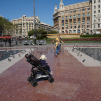 Da wohl ein eigener Bus kaputt war kam ein organisierter Reisebus um uns alle vier samt Buggy, Rucksack, Foto und allerlei nötigen und auch vielleicht unnötigen Utensilien abzuholen. Während der Fahrt in die Stadt hatte ich und mein Schwesterherz ganz schön was zu kucken denn es wird hier in der großen Stadt deutlich lebhafter wie draußen “auf dem Land”. Wir wurden zum Placa de Cataluña, dem eigentlichen Zentrum der Stadt gebracht an dem ganz viele Busse gehalten haben.