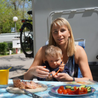 Kaum hats gedämmert wurde ich leider auch schon wieder wach und mit mir der Rest der Bude. Juna kam mich gleich mit einem Stofftier trösten – danke Schwesterherz. Wir waren also alle wach und haben beschlossen gleich so bald als möglich loszufahren. Der Campingplatz war vom Preis- Leistungsverhältnis hier sowieso miserabel. An sich sahs erst mal ganz ok aus aber wir Kinder mussten das erste mal extra zahlen, unser Womo hat kaum durch die Gassen gepasst und das Dach hat an den ungeschnittenen Bäumen gestreift. Die sanitären Anlagen waren pfui bä und es gab nur kaltes Wasser zum Spülen usw.
