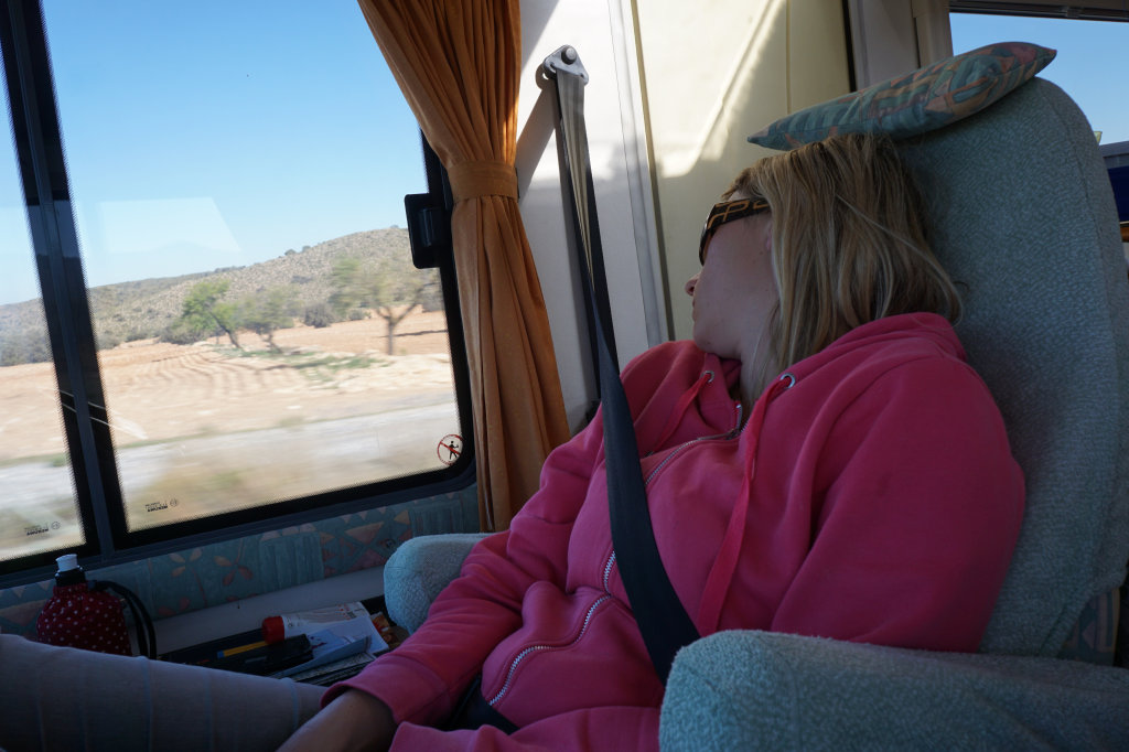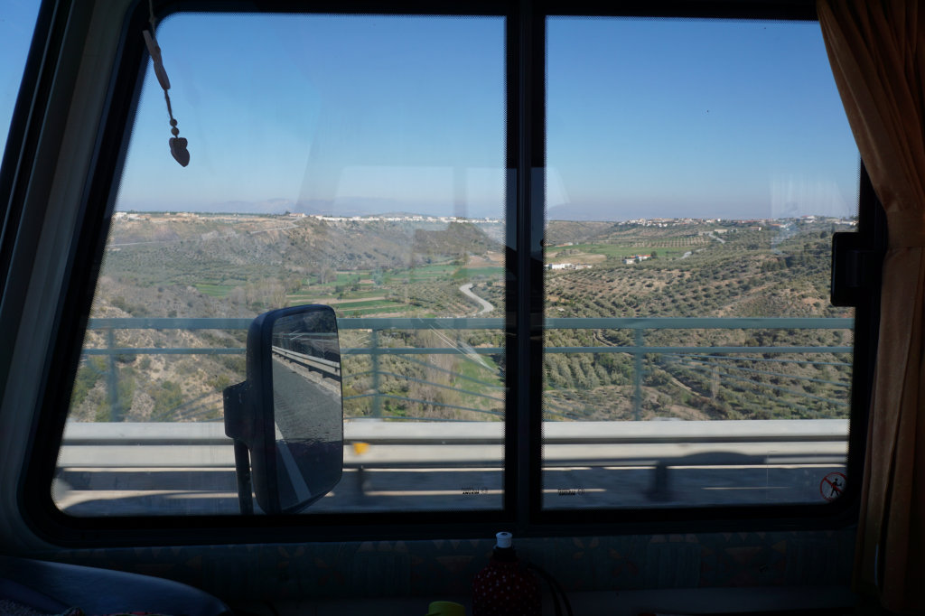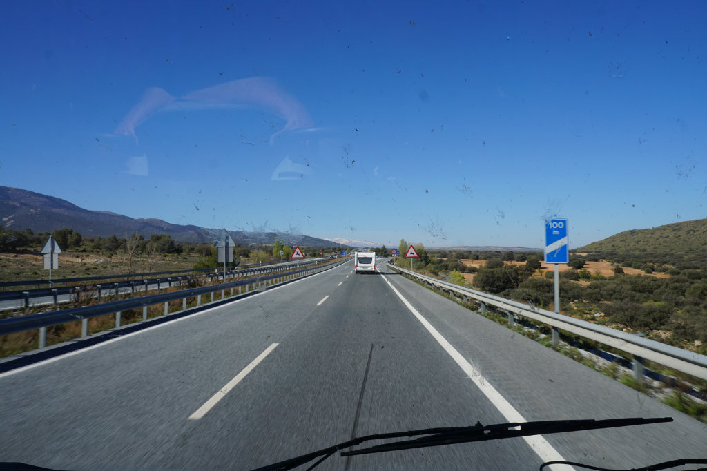 Also auf zu neuen Ufern was für uns die Stadt Granada bedeutet hat. Wir nur zusammengeräumt, den Müll weggebracht und sind ohne großes Frühstück und ohne Wasser zu tanken zurück auf die Autobahn. Mama und ich sind dann auch gleich eingeschlafen um noch Reste der Nacht aufzuholen. Ich hab allerdings später gehört dass Mama kaum längere Ruhepausen als 10 Minuten bekommen hat da Juna immer wieder neue Wünsche während der Fahrt hatte die sie sagen wir mal SEHR GERNE erfüllt haben wollte.