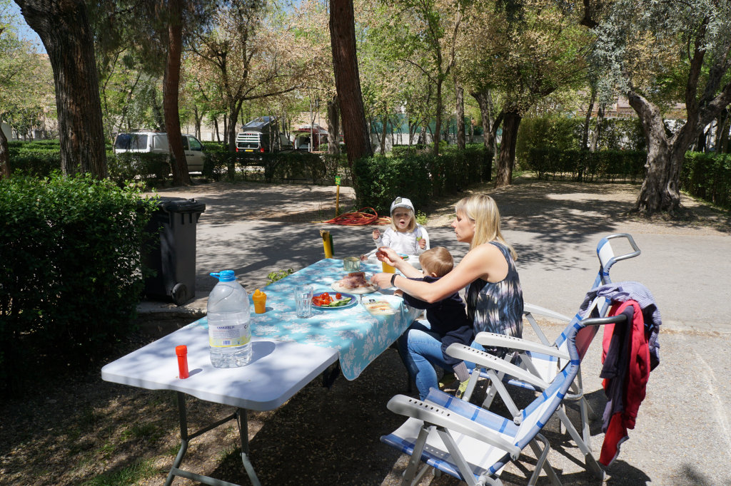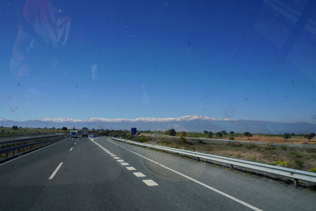 Die Landschaft war mal was ganz anderes. Echt interessant so am Rande der Sierra Nevada, viel bergiger als an der Küste und mit teilweise echt coolen Ausblicken auf schneebedeckte Berge auf denen man zurzeit immer noch Skifahren kann. Es lief wieder sehr gut auf den heutigen 220 km und wir kamen so etwa um 12 Uhr in Granada auf einem Campingplatz fast mitten in der Stadt an. Hier war alles in Ordnung, ein Spielplatz vorhanden und die Busverbindung nur Minuten entfernt.