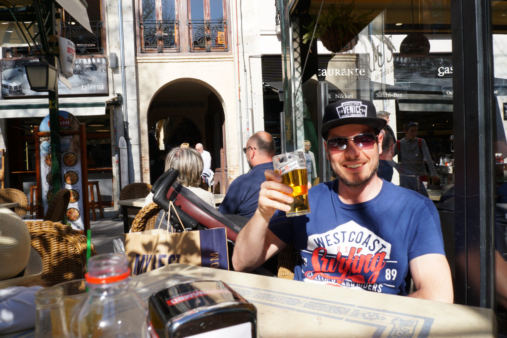 Wir haben ein bisschen gevespert und ne Dose von Ströbeles selbst eingemachtes Fleisch und ein paar übrige Landjäger und so verputzt. Danach sind wir alle zur Bushaltestelle gelaufen und ins Zentrum gefahren. Wow, die Stadt hats in sich – ne Menge los und echt schöne historische Gebäude und Gassen. Die Stadt hat eine sehr bewegte und interessante Geschichte. Natürlich ist heute viel für Touris eingerichtet aber das war bei dieser coolen Stadt zu verkraften. Wir waren in einigen Läden und haben dies und das angeschaut. Papa war sogar noch Klamotten einkaufen. Mama meinte da kriegt sie ihn ja sonst kaum dazu und wenn wir schon grad zur richtigen Zeit am richtigen Fleck waren müsste er da durch…