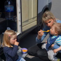 Ich hab während der Fahrt schön lange geschlafen und bin erst aufgewacht als es anscheindend wirklich sehr dringend war das Womo aufzutanken. Bei der Gelegenheit haben wir dann eine kleine Pause eingelegt, ne Kleinigkeit gegessen und Kaffee gemacht. Die letzten 90 km war dann wieder Mama- Animation angesagt was uns die Zeit doch recht gut vertrieben hat.