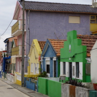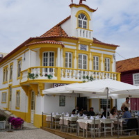 Wir für unseren Teil nahmen uns den Tag um Costa Nova und dessen malerische Holzhauspromenade samt Umgebung zu besuchen. Über die Uferstraße gelangten wir nach kurzem Fußmarsch zu den bekannten bunten Holzhäusern. Hier am Hafenbereicht reiht sich ein Holzhaus an das andere. Sie sind abwechselnd mit weißen und bunten Streifen in einer jeweils anderen, kräftigen Farbe bemalt. Die Fischer errichteten diese Pfahlbauten, die sogenannten “palheiros”, die als Schutzhütten oder zur Lagerung ihrer Gerätschaften dienten. Nach ihrer Restaurierung sind aus ihnen hübsche Ferienhäuser geworden.