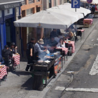 Sie erklärte uns noch den kürzesten Weg zum Herzen der Innenstadt und wir machten uns auf den Weg. Juna erklärte mehrfach sie hätte einen Bärenhunger, sie könne aufgrund dessen nicht mehr weiter laufen und sie wolle ein Eis und sie wolle dies und das und alles sofort! Also rein ins nächsbeste Straßencafe um etwas zu essen. Leider waren die Angestellten hier in der Großstadt eher unfreundlich und ziemlich kurz angebunden. Alles nur zack zack und kein Lächeln übrig. Juna wollte unbedingt das Spezialmenü mit Toast, Ei und Pommes wie es auf dem Foto der Karte zu sehen war. Als es kam wollte sie aber eher nur Pommes ohne etwas drauf 🙁 Wie gut dass schon überall Soße drauf war…