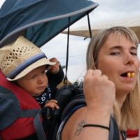 Mir kams komisch vor… Ich bin um halb 6 aufgewacht von Fahrzeuggeräuschen, Stangengeklapper, Gerede und sonstigem regen Treiben direkt hinter unserem Auto. Was konnte das sein? Wir sind doch extra auf den hinteren Parkplatz umgeparkt weil heute großer Markt auf dem vorderen Parkplatz sein sollte… So dachten wir es uns jedenfalls 🙂 Ich hab mal Papa geweckt damit der kucken konnte was das los war. Rollo runter und siehe da, ich hab mich nicht getäuscht was die Aufbaugeräusche anbelangt hatte. Wir standen direkt hinter zig Marktfahrzeugen die gerade ihre ganzen Marktstände aufgebaut haben!
