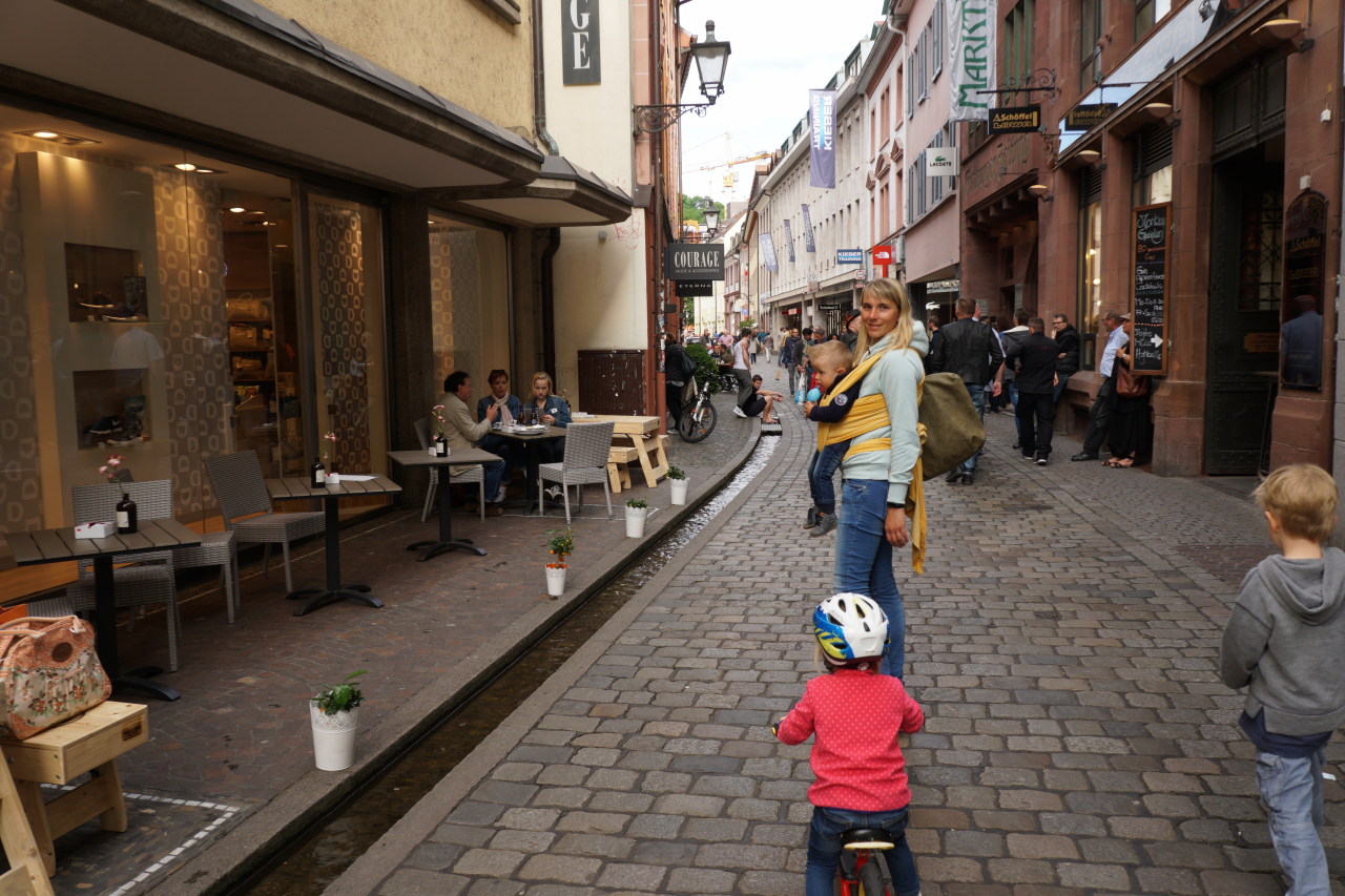 Freiburg war unser Ziel für heute. Freiburg im Breisgau, die viertgrößte Stadt Baden Württembergs wollte sich vor allem Papa unbedingt mal ansehen denn er war im Gegensatz zu Mama noch nie hier gewesen. Ich und Juna lassen uns einfach mal überraschen was uns hier denn so erwartet. Der Campingplatz der sehr zentral gelegen ist war zumindest schon mal sehr gut – richtig sauber, sanitäre Anlagen fast wie man sie zuhause hat und es herrschen wieder die altbekannten Gepflogenheiten wie akribische Mülltrennung und genau definierte und ausgehängte Regeln. Nichtsdestotrotz fühlen wir uns auf Anhieb wohl. Das Personal und die Gäste sind freundlich und wir können uns wieder auf deutsch verständigen. Juna ist wie sie immer sagt “ganz baff” dass man sogar ihr schwäbisch wieder versteht.