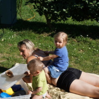 Und außerdem haben wir nur kurz auf der Holzbank am Stellplatzeingang einen Joghurt mit Bananen gefrühstückt. Juna hat mit nem Jungen von nebenan angebandelt und Papa hatte sich wie immer ne frische Kanne Kaffee aufgebrüht. Papa half noch zwei Pärchen den Ticketautomaten zu bedienen bzw. versuchte zu helfen denn heute lag der Fehler ausnahmsweise nicht vor dem Automat sondern im Automat, Der Kasten hatte sich offensichtlich aufgehängt und zeigte keinerlei Änderungen am Display mehr an…