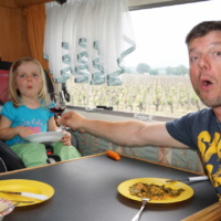 Papa kaufte danne eine Flasche Roten Wein aus 2014 fürs Abendessen von ihm und bezahlte die 7 € für den Stellplatz. Der 2015er Jahrgang wird erst nächste Woche abgefüllt. Erst dann viel uns so wirlich auf dass die meisten Reben hier im Umkreis alle braun und abgestorben waren. Manche Felder am Waldrand und auch manche Felder ein paar Kilometer weiter standen jedoch noch in sattem Grün da und wir wussten momentan nicht ob das vielleicht an der Sorte oder an dem etwas geschützteren Ort lag. Wir lasen später in den Nachrichten dass der Frost ja auch Deutschlands Obstbauern schon davor empfindlich getroffen hatte – das haben wir alles gar nicht mitbekommen…