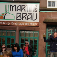 Nach einem Weilchen hin und her ob wir noch mit der S- Bahn in die Stadt fahren sollten entschieden wir uns dafür. Die nächste S- Bahn- Station lag nur wenige Gehminuten entfernt und die Fahrt ins Zentrum dauert ebenfalls nicht lang. Das Wetter war gut und wir fanden Freiburg auf den ersten Blick schon sehr beeindruckend. Wir waren unter anderem in der Martins- Brauerei einkehren. Papa war sehr angetan vom hausgemachten, naturtrüben und gehaltvollen Bier das er so die letzen Wochen nie bekommen hat. Da musste er gleich noch ein Weizen probieren und auch das war gut 🙂 Er fand in Spanien, Portugal und Frankreich zwar einige Biere die ihm schmeckten aber das hier war schon irgendwie wieder was ganz anderes. Auch der Wurstsalat und die dicken hausgemachten Pommes waren superlecker!
